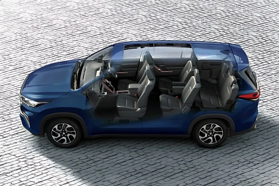 The MPV is available in 7 and 8-seater layout with the former having captain seats in the second-row. The MPV misses out on ADAS tech and ottoman seats in the second-row, which are available in the HyCross. The Maruti MODEL has a 6-speaker audio system and in-built Suzuki Connect Technology with remote functionalities & 50+ connected features.