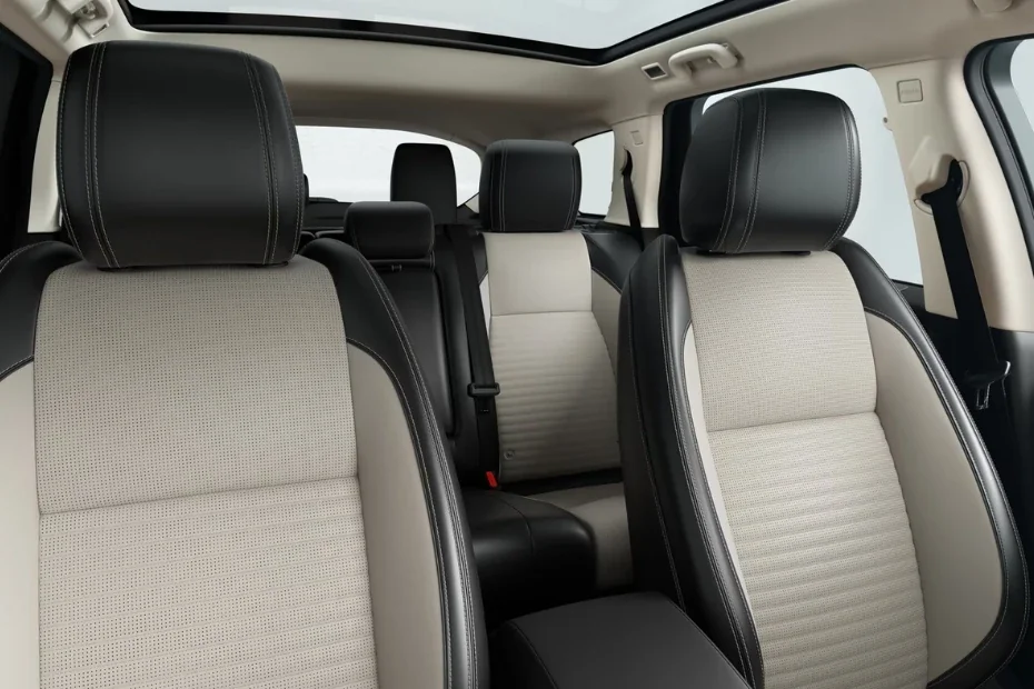 The Land Rover Discovery Sport offers creature comforts like LED headlamps with signature DRLs, 19-inch Gloss Dark Grey alloys, DuoLeather seats, 12-way powered driver and 10-way powered passenger seats with memory function, an 11.4-inch Pivi Pro curved infotainment, a digital driver’s display, Meridian sound system, wireless charger, manual slide & recline 2nd row seats, panoramic roof, a powered tailgate, multi-zone climate control, etc.