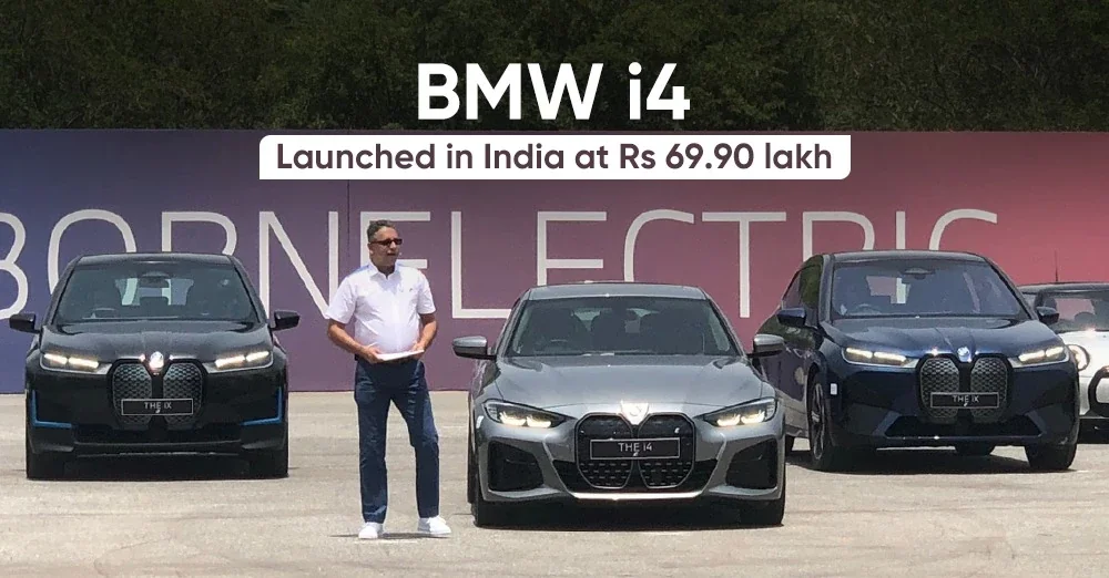 BMW has launched the i4 electric sedan in India; Priced at Rs. 69.90 lakh (ex-showroom); Offers a range of 590 Kilometres and will be sold as a CBU unit.