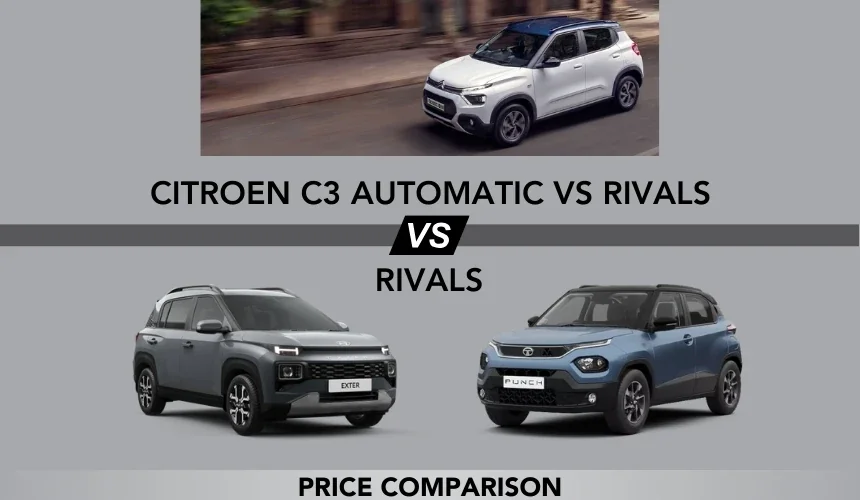 The Citroen C3 hatchback has been updated recently with new features and can now be opted with automatic transmission, alongside its turbo-petrol engine. In the micro SUV segment, including the Hyundai Exter and Tata Punch, the Citroen C3 would find to be very attractive. Citroen has revealed the Indian market's price of the C3 automatic well after a major feature upgrade for the model. The automatic gearbox comes only on the top-spec C3 Shine variant. Here's a head-to-head comparison between the Citroen C3 automatic and its rivals.