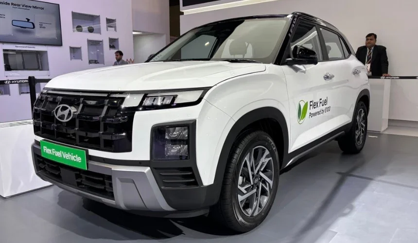 An international Creta variant showcased at the Auto Expo 2025. Creta SUV variant with no such visual difference from models in the line-up. Creta variant that can run on pure E100 ethanol.