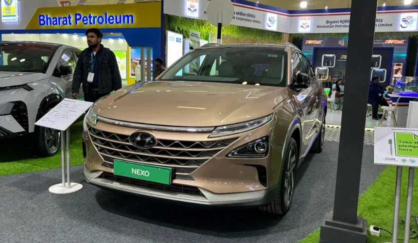 Hyundai's hydrogen fuel-cell vehicle showcased at Auto Expo 2025. The Hyundai Nexo would be a great alternative fuel tech. It has a battery pack that uses hydrogen to produce electricity.