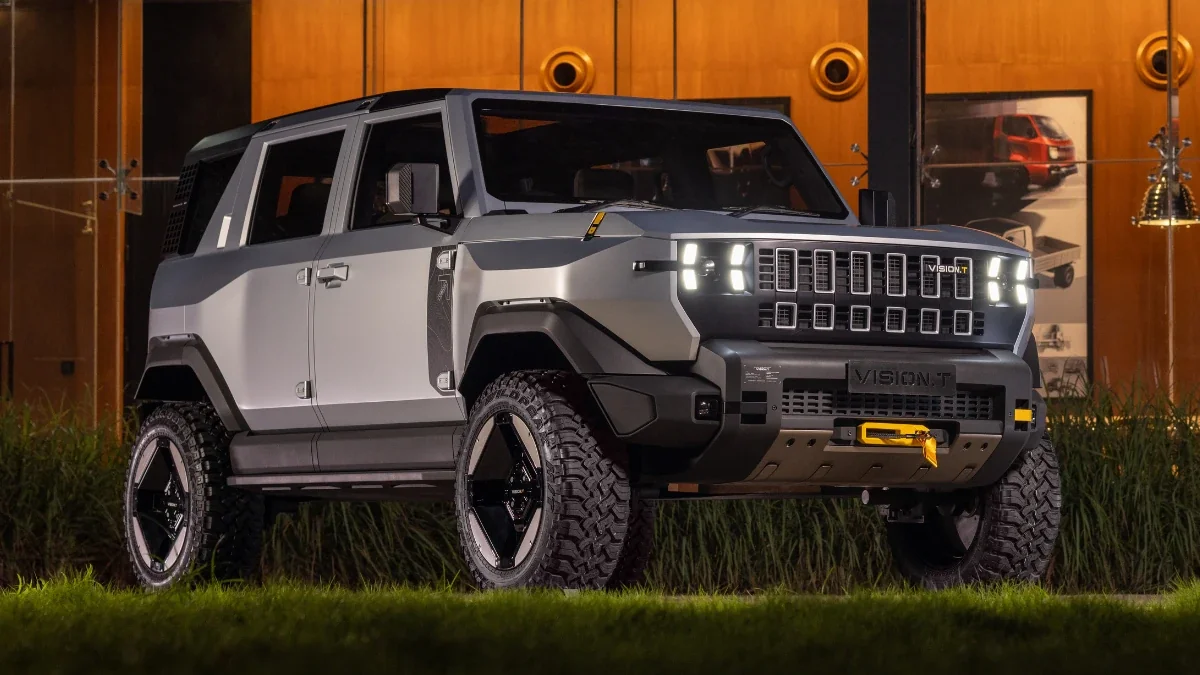 Mahindra Vision T concept previews future Thar electric It is an evolved version of the Thar.e concept Based on Mahindra's new NU_IQ modular platform Shares design with Thar Roxx Launch expected in 2027