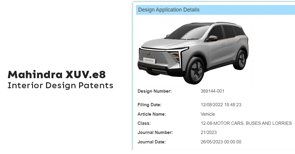 Based on the patent designs, the production-spec XUV.e8 looks similar to the concept version showcased previously. In terms of exterior design, it is expected to feature a blanked-off grille, vertically stacked projector headlamps, an LED light bar, a new front bumper, copper-coloured inserts all around, and aero-inspired wheels.