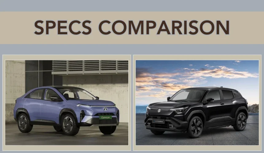 Maruti e Vitara vs Tata Curvv specifications compared Both are offered with two battery options The e Vitara has both 2WD and 4WD setups While Curvv EV offers a certified range of 500 km