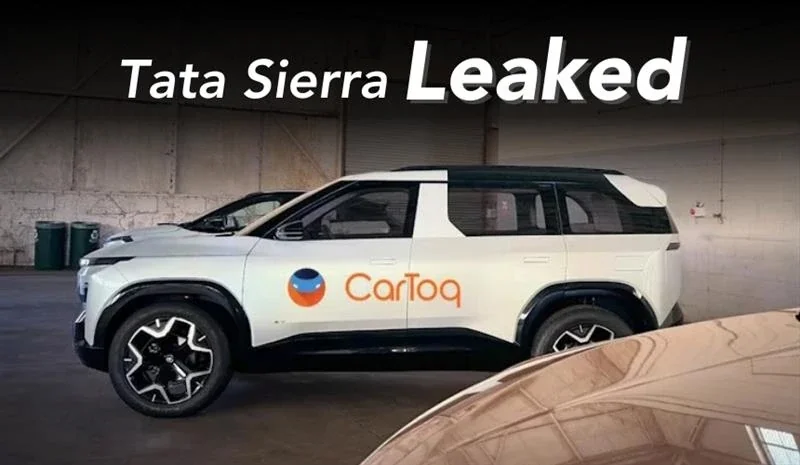 The first images of the production-ready Tata Sierra SUV have been leaked on the web, and what’s interesting here is that the model appears true to its concept. The SUV carries a tall stance with large and curvy rear windows and a large rear glass area. The all-black C and D pillars maintain the original Sierra’s identity. Design elements such as uniquely designed alloy wheels, black roof rails, and squarish, pronounced wheel arches with black cladding enhance its sporty appearance. You can also notice an ‘EV’ badge on the front door.
