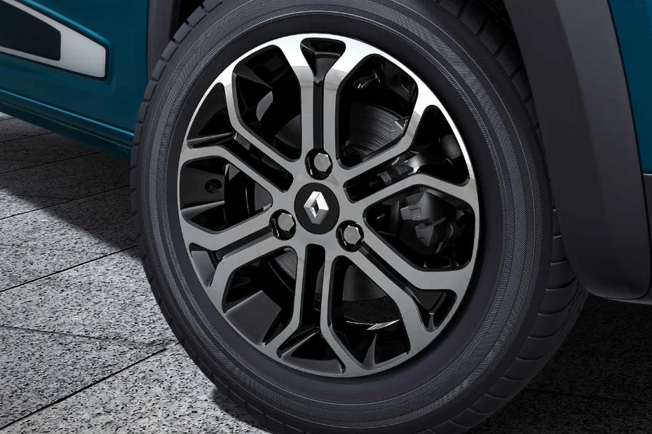 On the sides, the Kwid car gets prominent wheel arches, black plastic cladding all around, dual tone multi spoke 14-inch alloy wheels and roof rails.