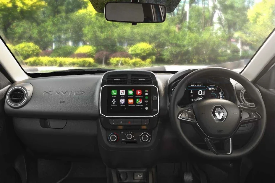 The Kwid's interior also features power windows, power steering, air conditioning, and storage options such as cup holders, glovebox and door pockets. The overall interior design of the Kwid is practical and user-friendly, making it an ideal car for daily commuting and city driving.