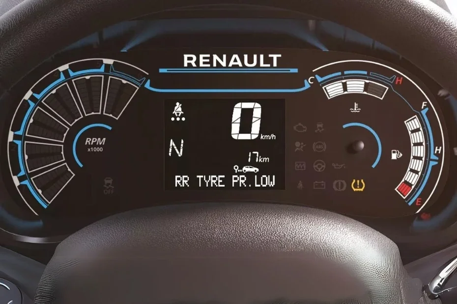 Interior: The Renault Kwid provides a dual tone interior with fabric upholstery. Unlike before, the instrument cluster is fully digital comprising a tachometer, speedometer and fuel gauge meter. The overall interior design of the Kwid is practical and user-friendly, making it an ideal car for daily commuting and city driving.